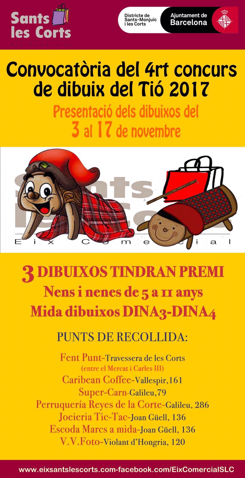 L’Eix Comercial Sants-Les Corts convoca el 4rt. concurs de dibuix del Tió, entre nens i nenes de 5 a 11 anys.
