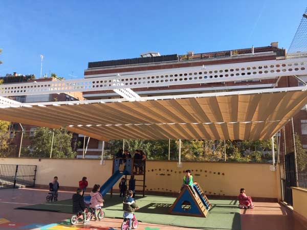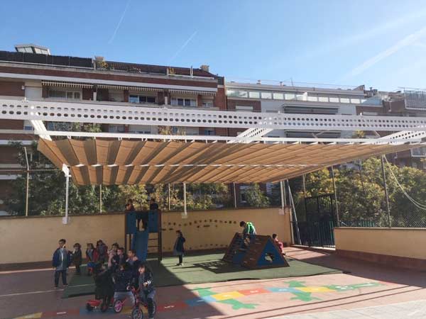 Fa uns dies es va instal·lar un nou tendal al pati d’Infantil, per tal que, en les èpoques de més sol i calor, els nens i nenes de P3, P4 i P5 tinguin zones de joc amb ombra.