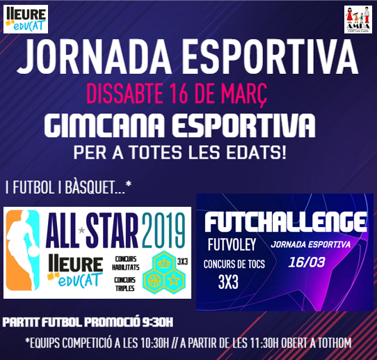 - 10:30 – 11:30 h: ALL STAR (equips bàsquet benjamí, prealeví i aleví)