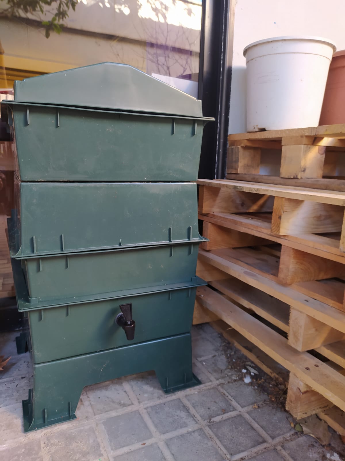 A l’escola disposem d’un nou vermicompostador, és a dir, un sistema contenidor que permet reciclar amb cucs de terra, restes vegetals, etc.